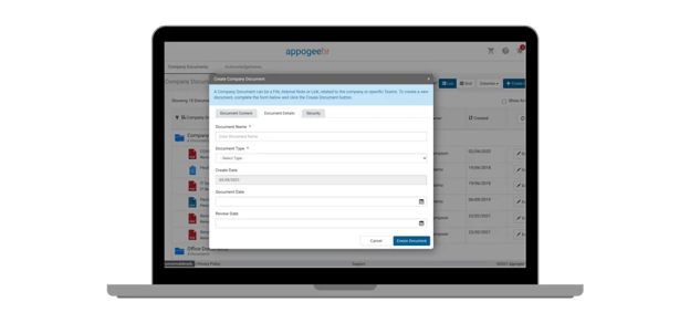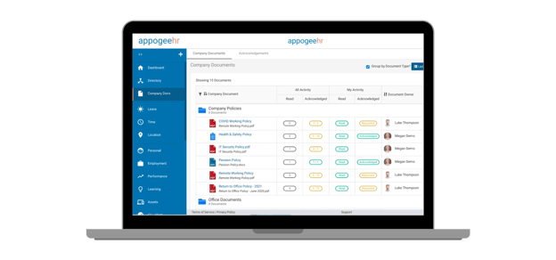 This is where HR document management software excels. You can store and share all your company documents and policies directly within Appogee HR. With straightforward versioning and acknowledgment requests, our HR storage system simplifies compliance and policy management, keeping everything organised and easily accessible.