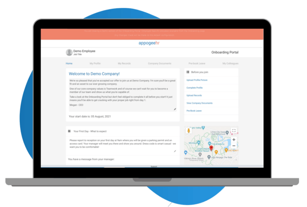 From preboarding to onboarding, Appogee HR provides specific welcome messages to new hires. Personalise your message or use our default phrasing.