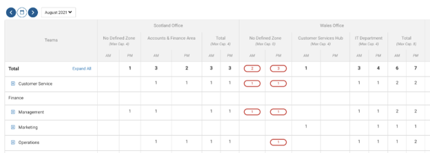 Location tracking software provides easy office capacity management. Staff simply enter their location - in real time or in advance - and the system updates accordingly, giving visibility and sending alerts when preset capacity limits are reached.